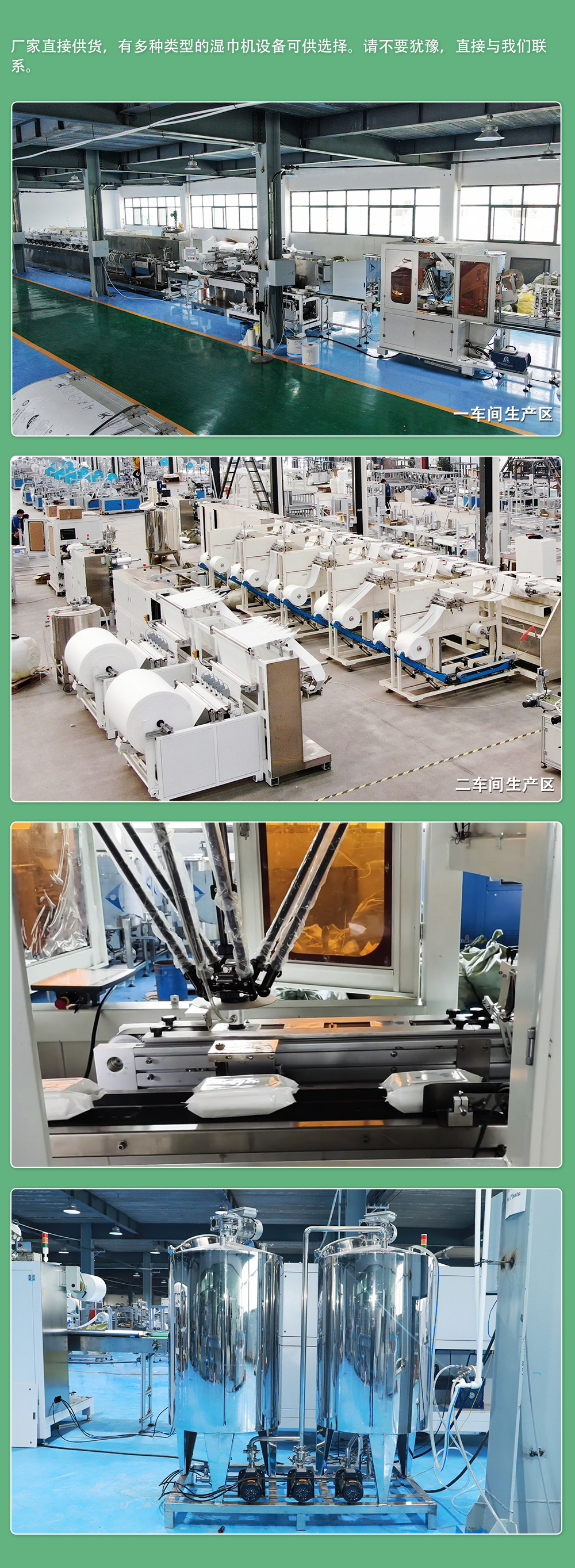 30-120片装20道湿巾机简称20道湿巾生产线,该湿巾机整条生产线是由功能完整的伺服驱动,全伺服控制,彩色液晶触摸屏独立操作,操作可靠、简单、方便、灵活,性能稳定,技术。20道湿巾生产线工艺流程广泛应用于生产一次性家庭清洁湿巾或卫生护肤湿巾等上百种湿巾类型。